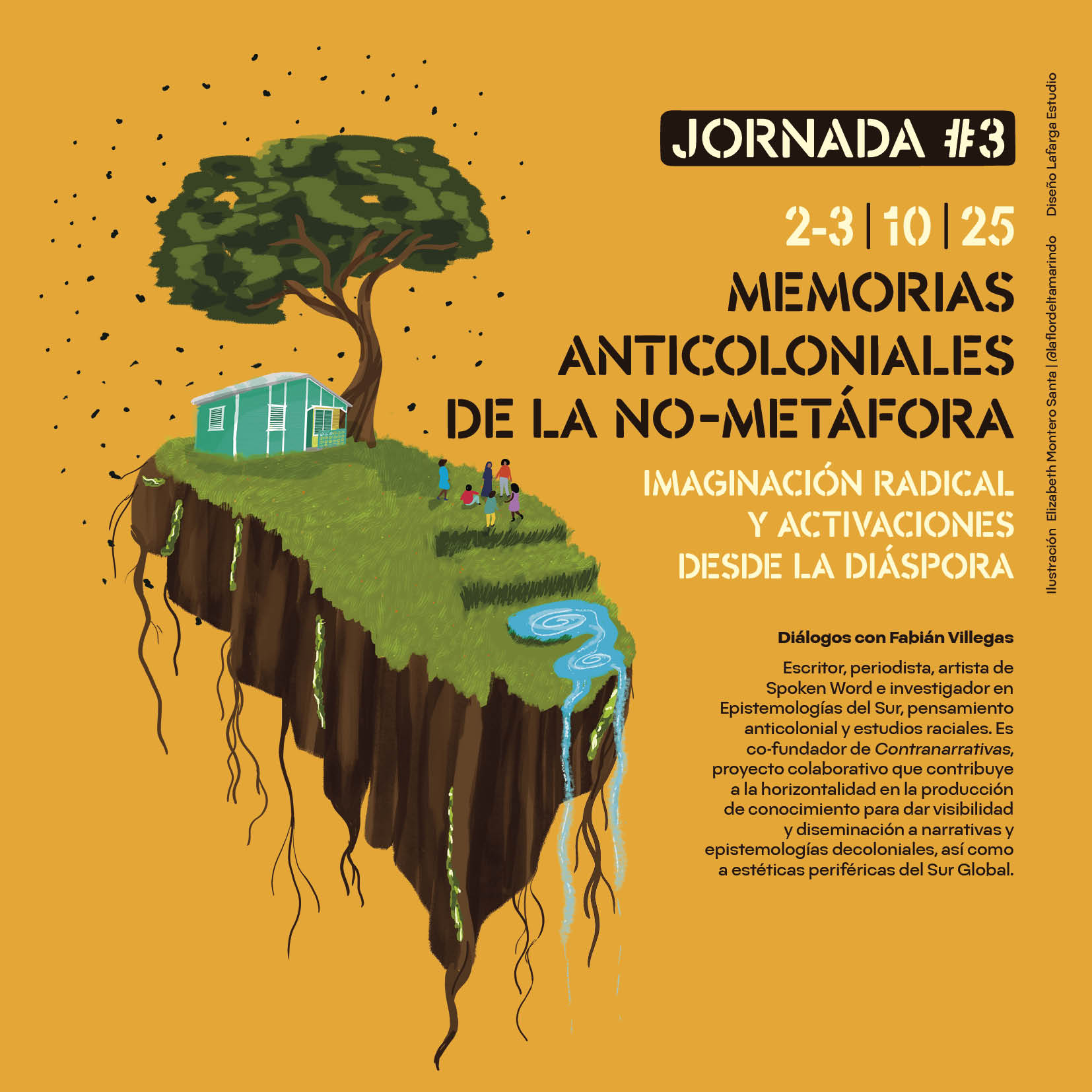 Este tercer encuentro estará orientado por el investigador mexicano Fabián Villegas. Un espacio donde conectar experiencias, saberes e historias para resonar memorias anticoloniales, situadas y plurales que interpelan, desde el pensamiento y accionar comprometido, la homogeneidad del saber y el hacer cultural como un ejercicio emancipatorio frente a los regímenes de representación hegemónicos y el propio relato de creación.