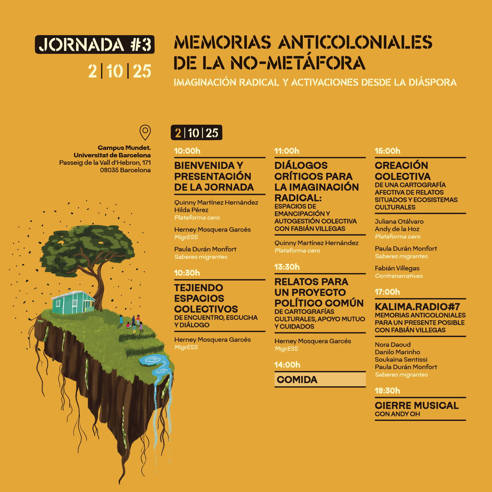 Se trata de pensar y producir futuros emancipatorios y sensibles, más allá de las fronteras y de las lógicas institucionales, ampliando desde la imaginación crítica las voces del tejido de agentes, gestorxs culturales, creadorxs, artistas, comisarixs diaspóricxs y racializadxs, así como aliadxs del norte global en la ciudad. Hablaremos de nuestras inquietudes y desafíos desde el pensamiento colectivo, reconociendo la potencia de situarnos juntxs para imaginar horizontes de resistencia y posibilidad.